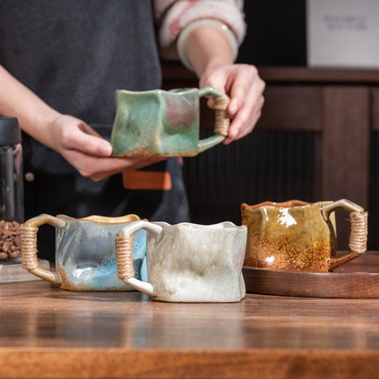 Ceramic Hand drawn vintage Coffee Cup Teacup with plate