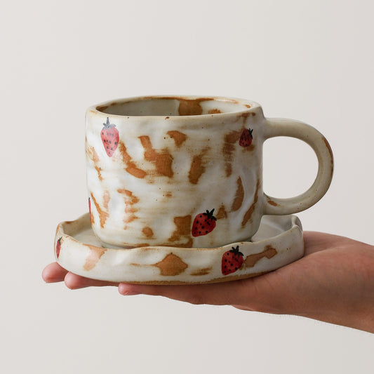 Hand Painted Strawberry Ceramic Coffee Cup & Saucer