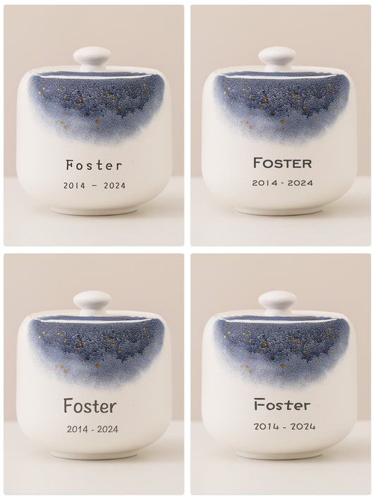 Hand Painted Starry Sky Ceramic Personalized Ceramic White Pet Urn, Pottery Urn for Pets, Cat Urn, Custom Carved Pottery Keepsake Urn