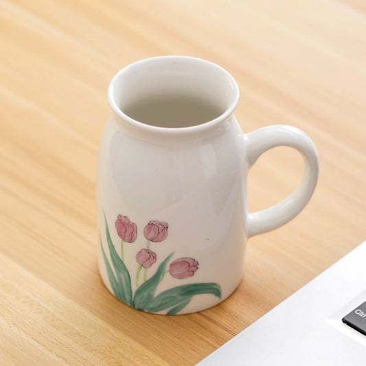 Hand Painted Tulip Jug for Milk Ceramic Water Cup Pottery Milk Pitcher