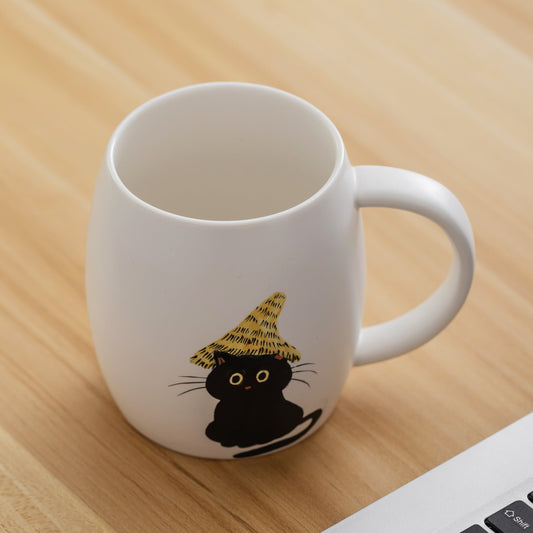 Hand Painted Black Cat in a Hat Coffee Mug Cat Cup 420 ML
